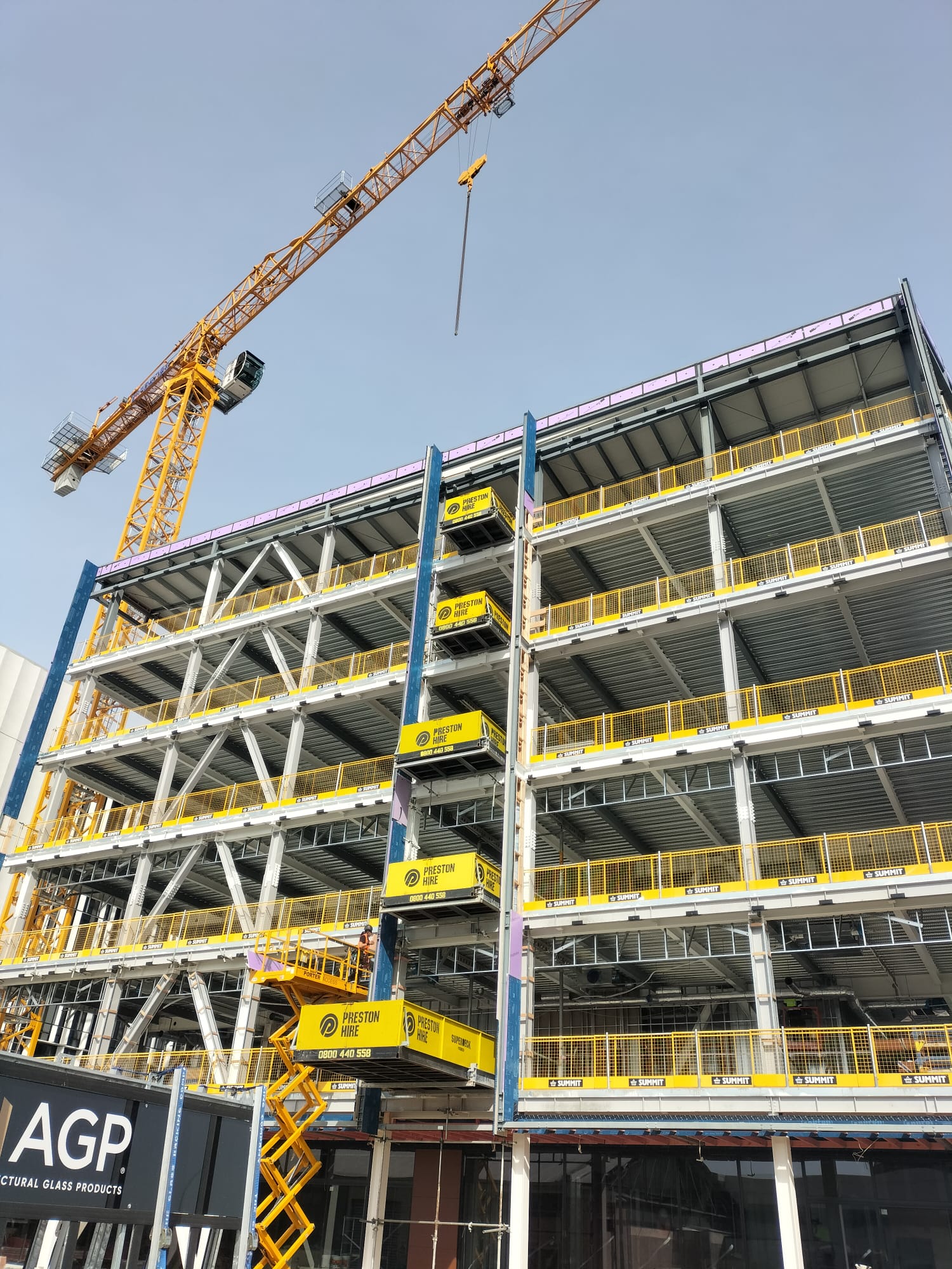 The Preston Superdeck is an example of a retractable loading platform. The system lets construction site managers position decks vertically, one above the other, for the fast delivery of materials into multi-storey buildings.